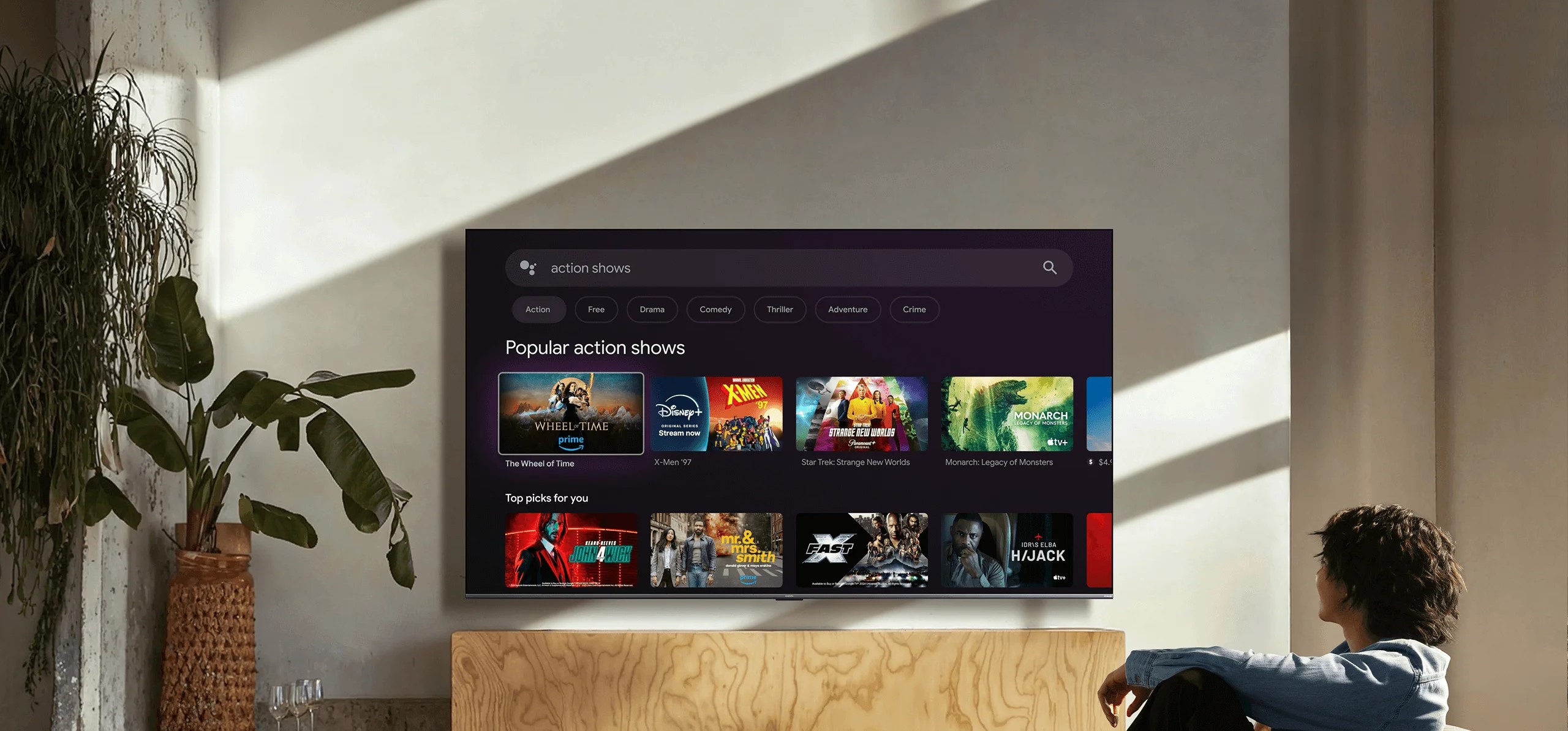 Xiaomi TV S Mini LED 85" 2026 выполнен в строгом современном стиле с тонкой черной рамкой и черной подставкой. Большой 85-дюймовый экран делает телевизор центральным элементом интерьера и хорошо подходит для просторной гостиной или домашнего кинозала. Поддержка настенного крепления стандарта VESA 600 × 400 позволяет выбрать наиболее удобный вариант установки.